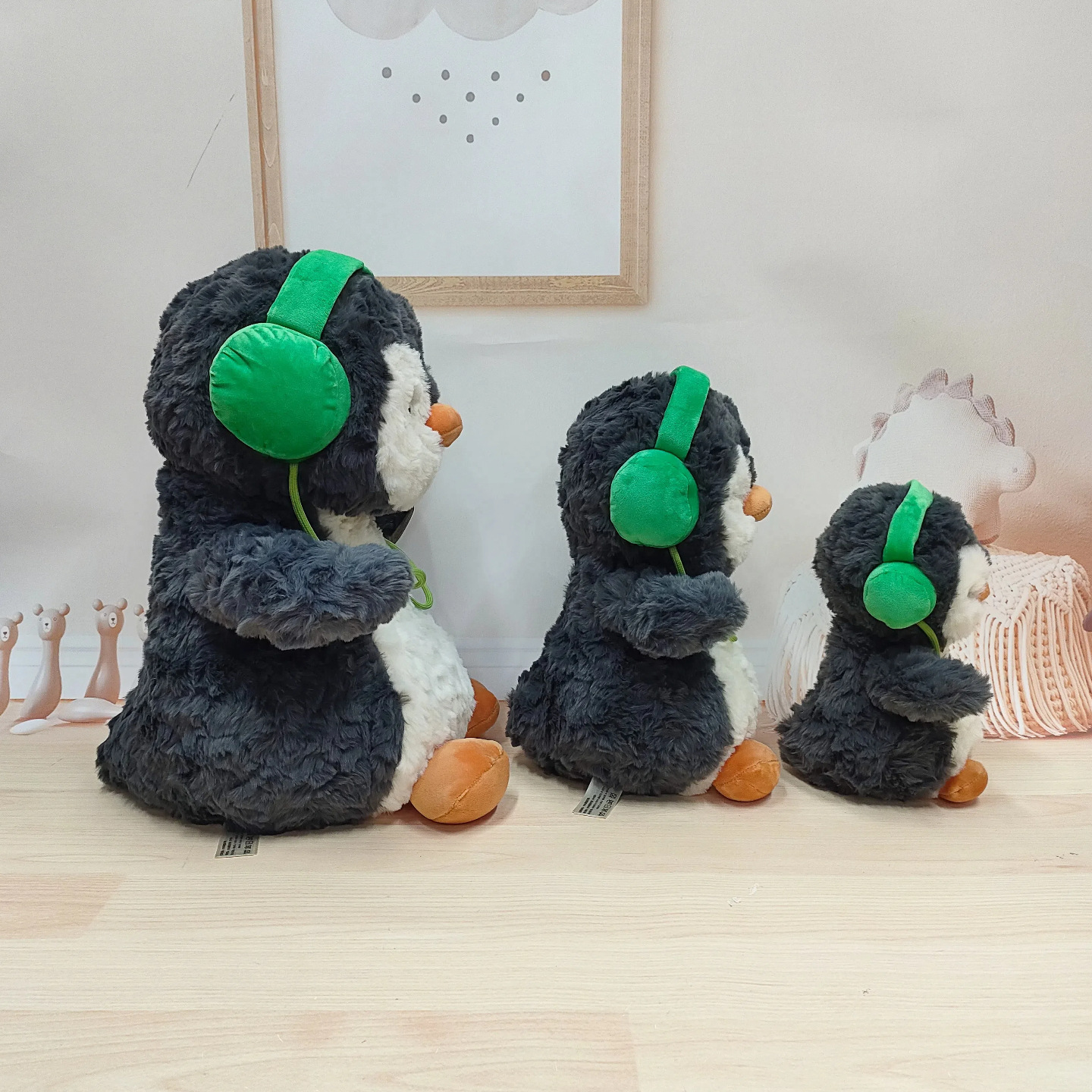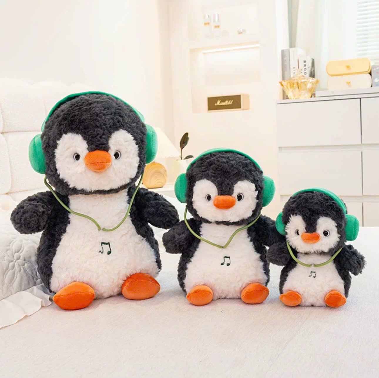 Gấu Bông Chim Cánh Cụt đeo tai nghe dễ Thương, cao 50cm, hàng nhập Quảng Châu cao cấp.